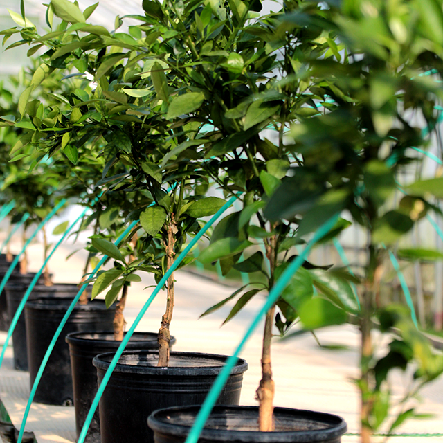 果樹苗:主にかんきつ苗を作っています。お客様がすぐ収穫できるように大きなサイズの苗の生産に取り組んでいます。
